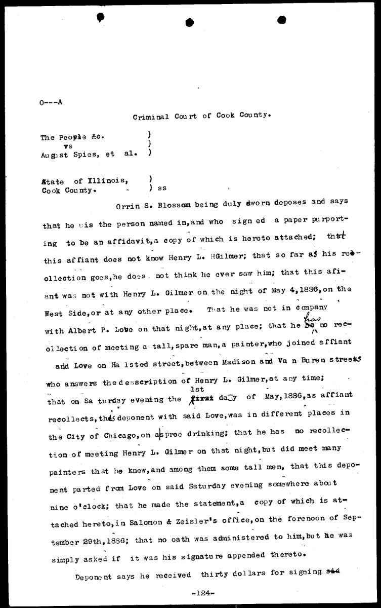 Affidavit of Orrin S. Blossom Volume O, Page 124