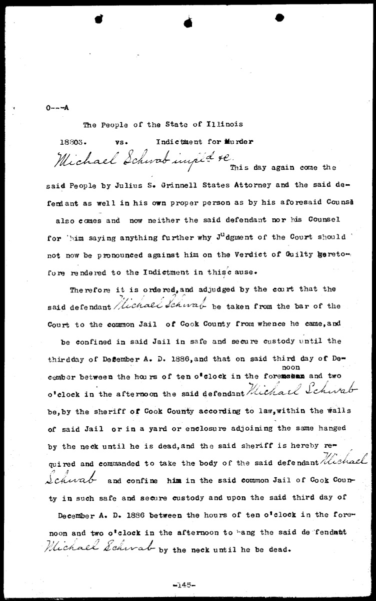 Indictments for murder Volume O, Page 145 Higher Quality Image (189K) | Previous Image | Next Image Return to Text | Return to Trial TOC | Return to the HADC Table of Contents