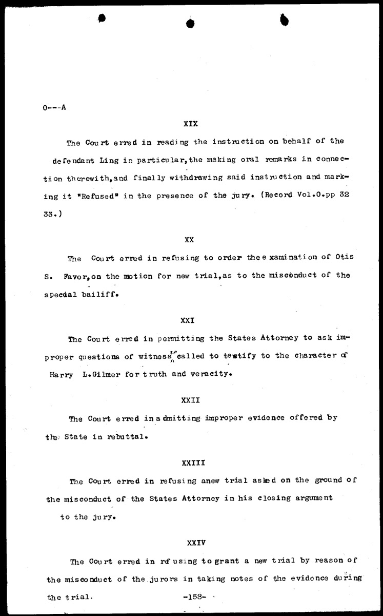Assignment of errors Volume O, Page 158 Higher Quality Image (125K) | Previous Image | Next Image Return to Text | Return to Trial TOC | Return to the HADC Table of Contents