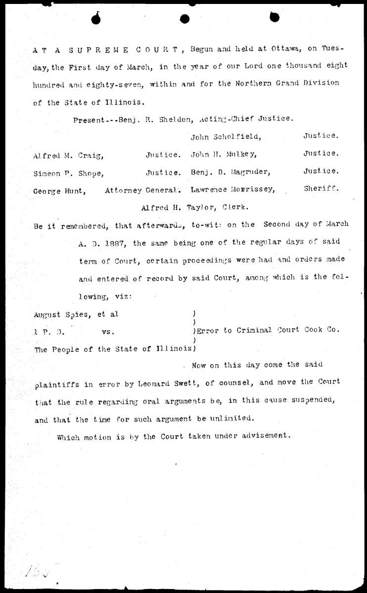 Illinois Supreme Court: outline of proceedings Volume O, Page 165 Higher Quality Image (141K) | Previous Image | Next Image Return to Text | Return to Trial TOC | Return to the HADC Table of Contents