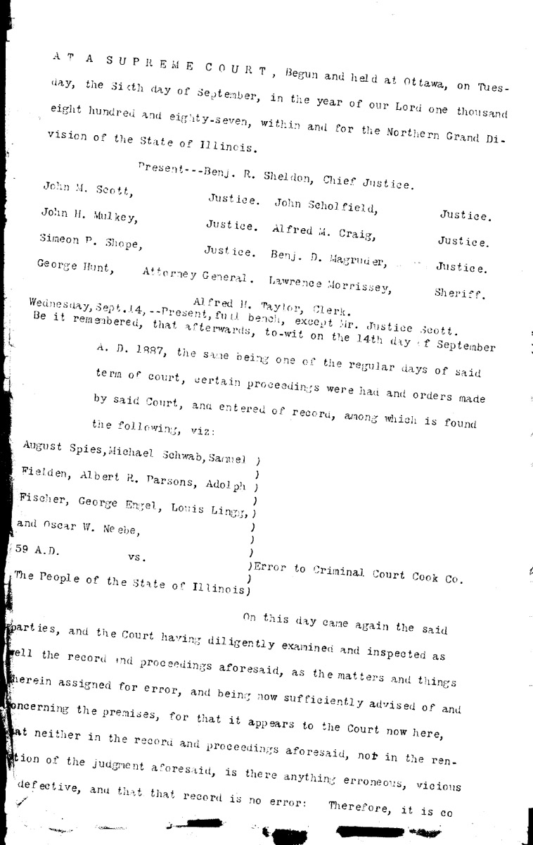 Illinois Supreme Court: outline of proceedings Volume O, Page 169 Higher Quality Image (179K) | Previous Image | Next Image Return to Text | Return to Trial TOC | Return to the HADC Table of Contents