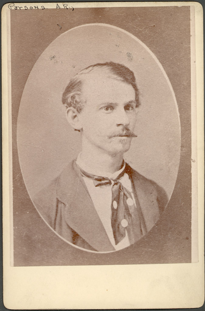 [Parsons, Albert R., portrait photograph]. Parsons before the Haymarket Anarchists Trial, when he worked as a printer.