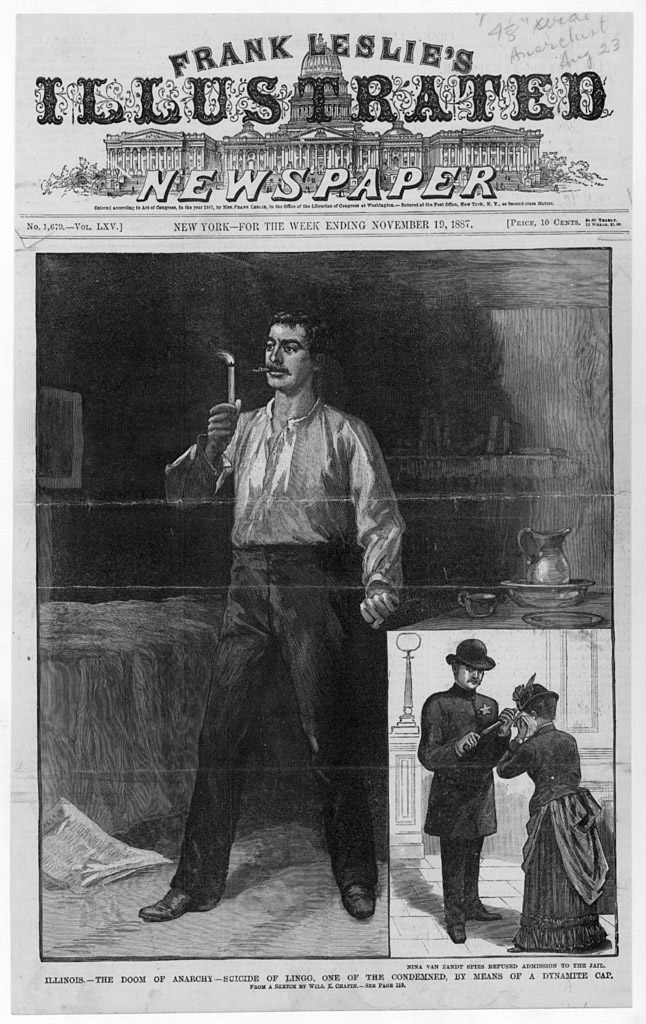 The Doom of anarchy: suicide of Lingg, one of the condemned, by means of a dynamite cap.
