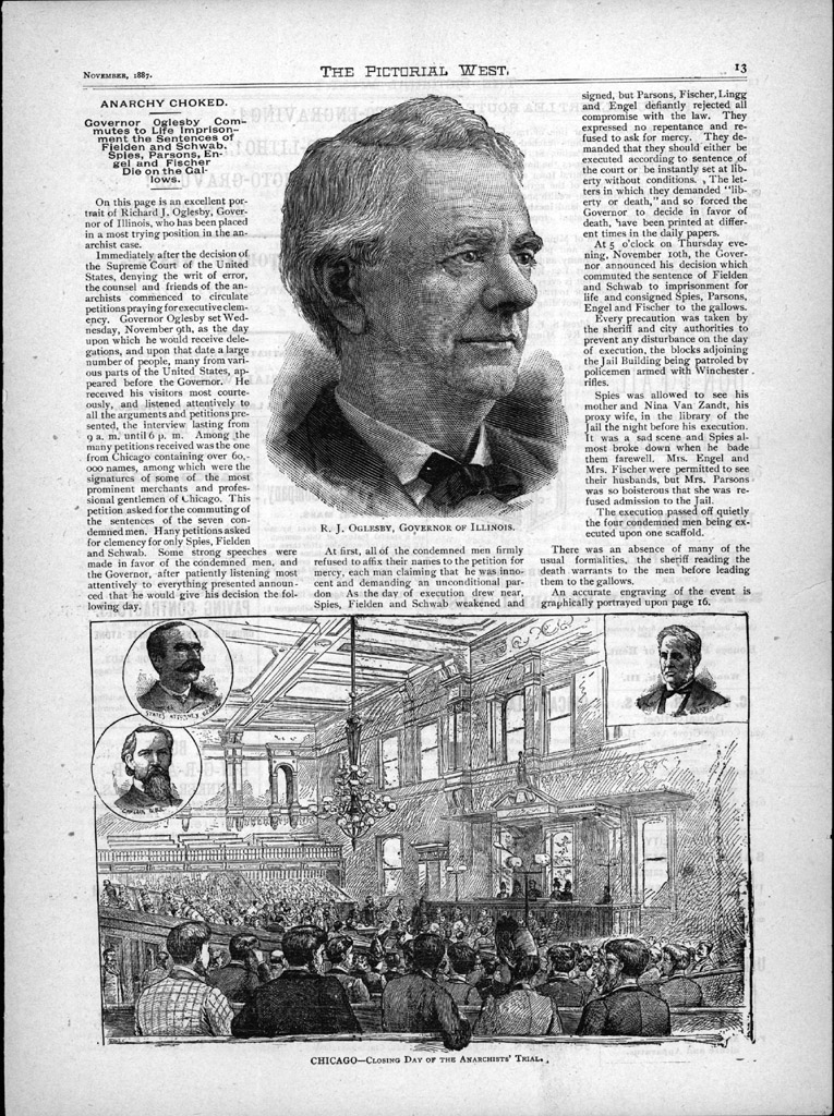 R. J. Oglesby, governor of Illinois: closing day of the anarchists' trial.