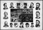 The Haymarket Riot with portraits of the anarchists and others. |