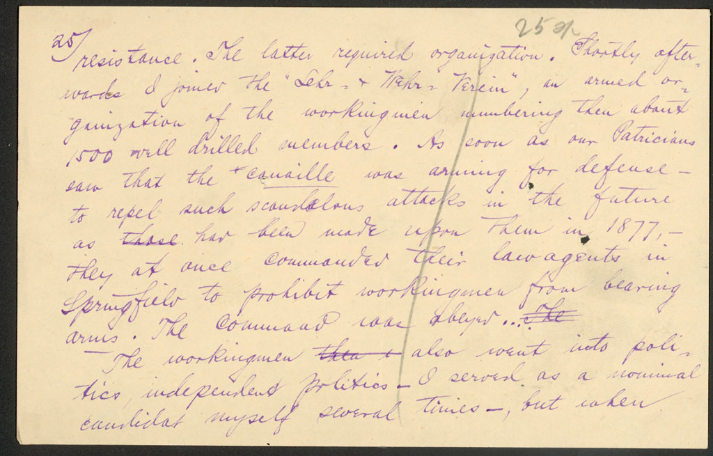 August Spies autobiography Page 25 Higher Quality Image (186K) | Previous Image | Next Image Return to Text | Return to Manuscripts TOC | Return to the HADC Table of Contents