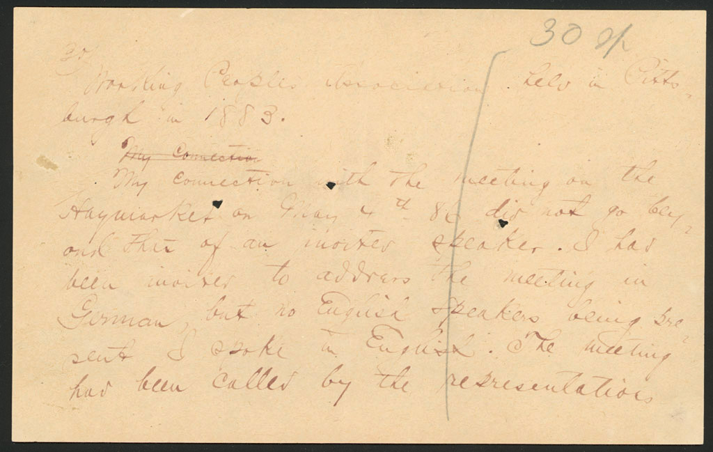 August Spies autobiography Page 30 Higher Quality Image (134K) | Previous Image | Next Image Return to Text | Return to Manuscripts TOC | Return to the HADC Table of Contents