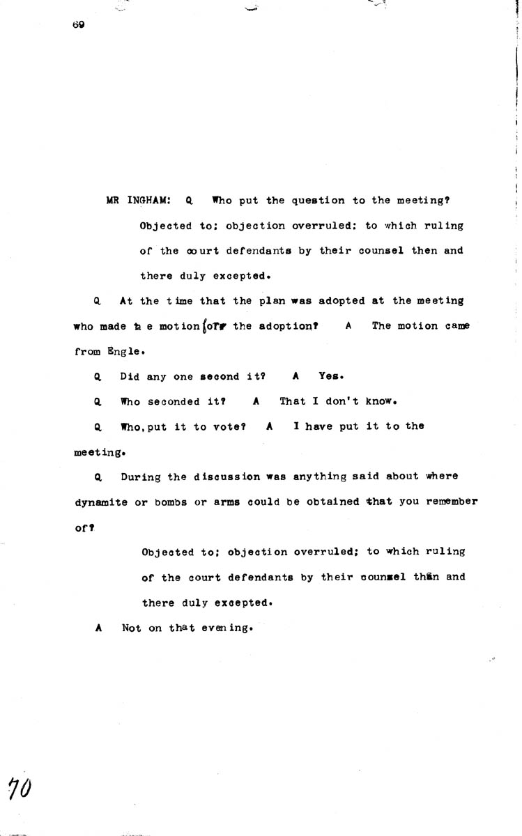 Testimony of Godfried Waller (first appearance) Volume I, Page 70 Higher Quality Image (68K) | Previous Image | Next Image Return to Text | Return to Trial TOC | Return to the HADC Table of Contents