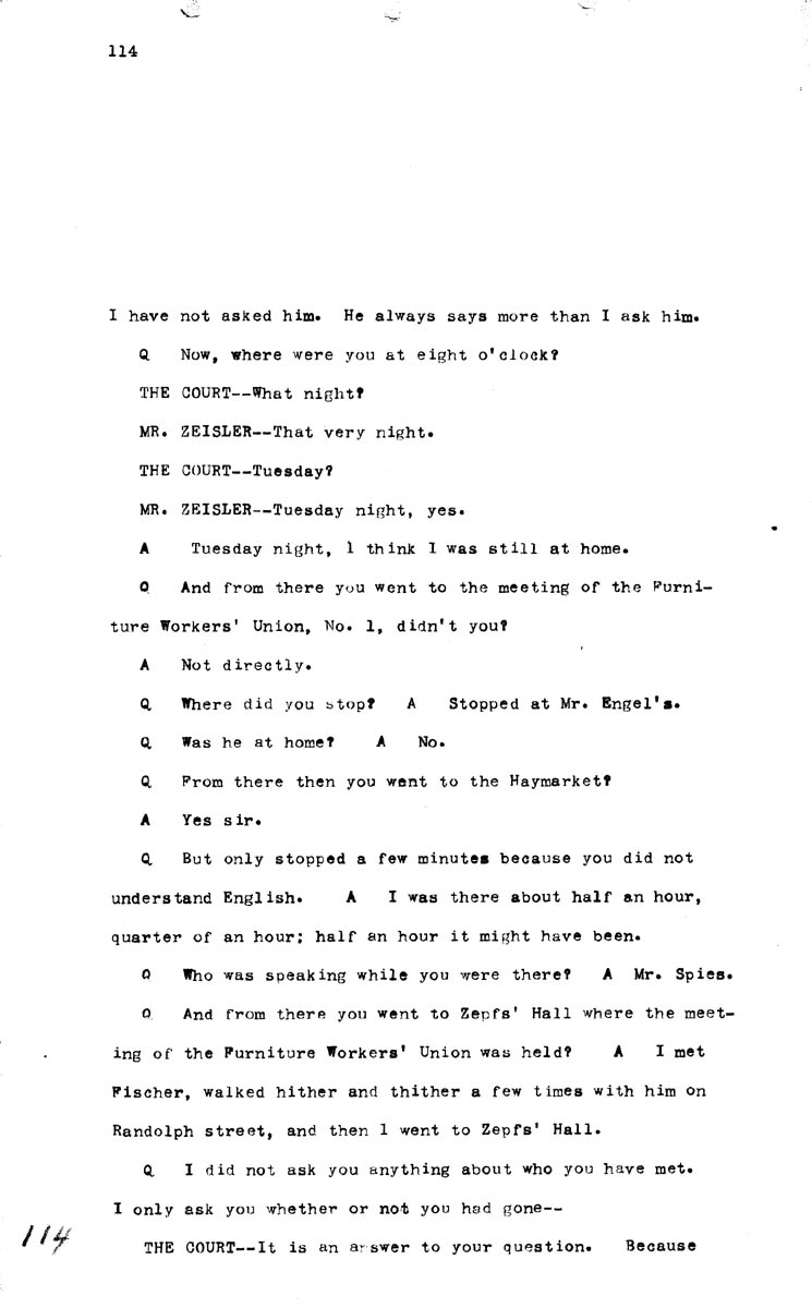 Testimony of Godfried Waller (second appearance) Volume I, Page 114 Higher Quality Image (90K) | Previous Image | Next Image Return to Text | Return to Trial TOC | Return to the HADC Table of Contents