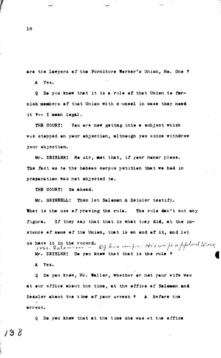 Testimony of Godfried Waller (second appearance) Volume I, Page 138 Higher Quality Image (91K) | Previous Image | Next Image Return to Text | Return to Trial TOC | Return to the HADC Table of Contents