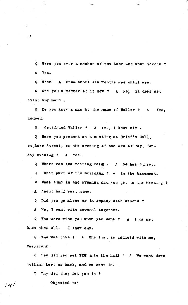 Testimony of Bernardt Schrade Volume I, Page 141 Higher Quality Image (80K) | Previous Image | Next Image Return to Text | Return to Trial TOC | Return to the HADC Table of Contents