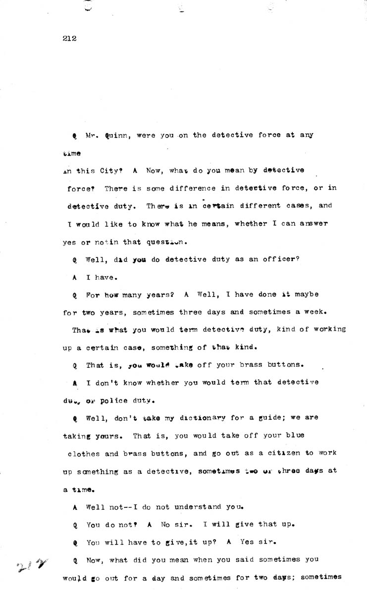 Testimony of Martin Quinn (first appearance) Volume I, Page 212 Higher Quality Image (96K) | Previous Image | Next Image Return to Text | Return to Trial TOC | Return to the HADC Table of Contents