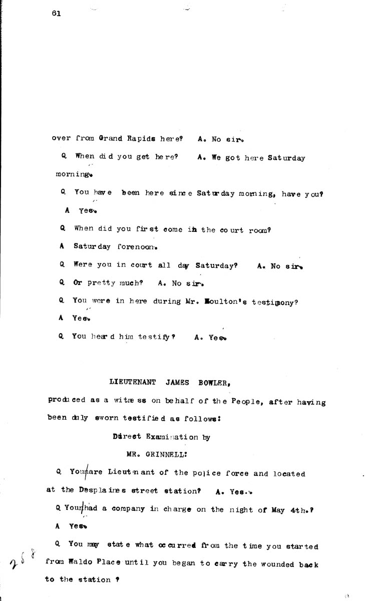 Testimony of George W. Shook Testimony of James Bowler (first appearance) Volume I, Page 288
