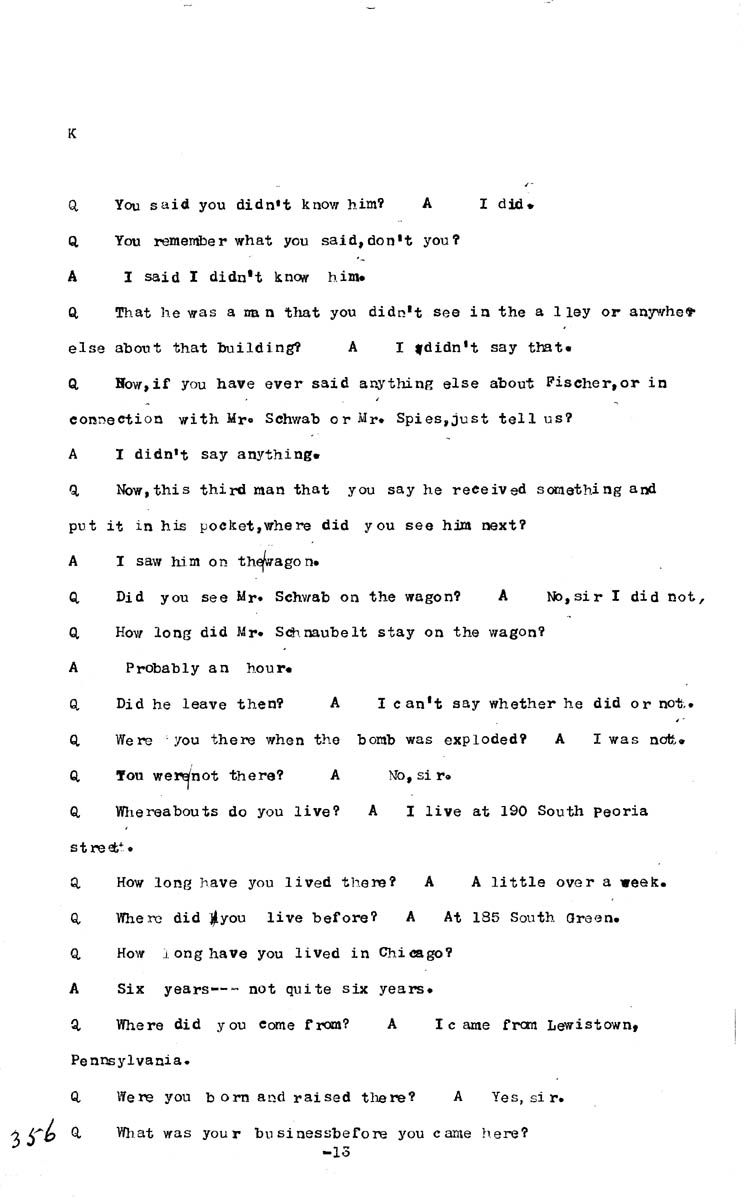 Testimony of Malvern M. Thompson (first appearance) Volume K, Page 356 Higher Quality Image (103K) | Previous Image | Next Image Return to Text | Return to Trial TOC | Return to the HADC Table of Contents