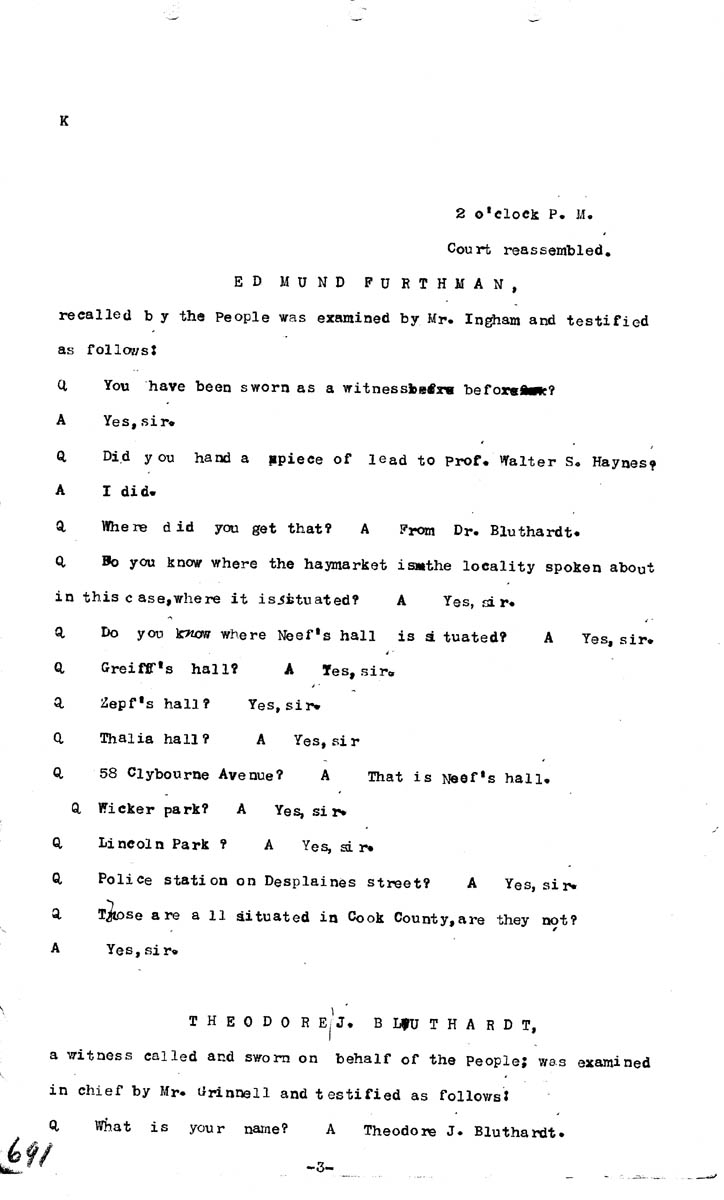 Testimony of Edmund Furthmann (second appearance)Testimony of Theodore J. Bluthardt Volume K, Page 691